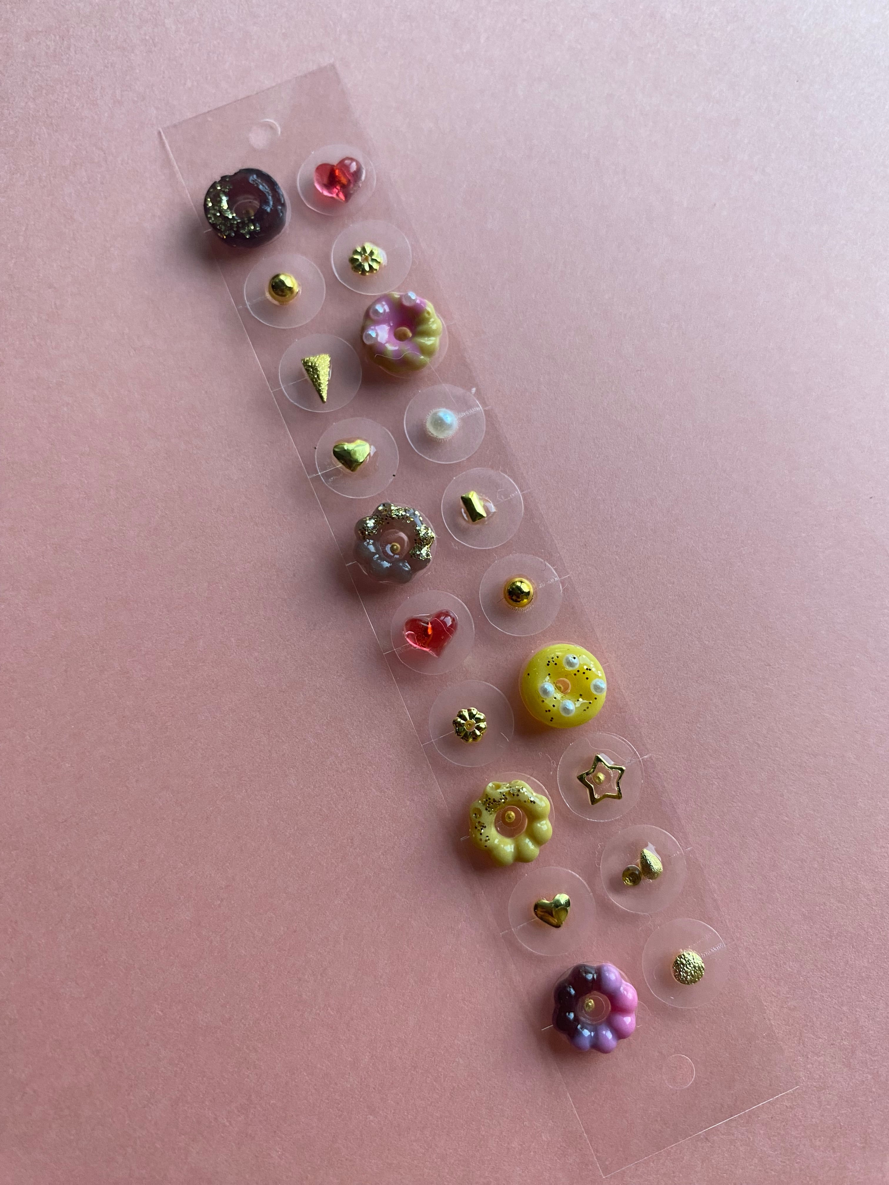 見ているだけで気分が上がる、オリジナルのドーナツ型パーツを使用したポップでキュートな耳つぼジュエリー!まるでスイーツみたいなカラフルな可愛さが、耳元を楽しく彩ります。