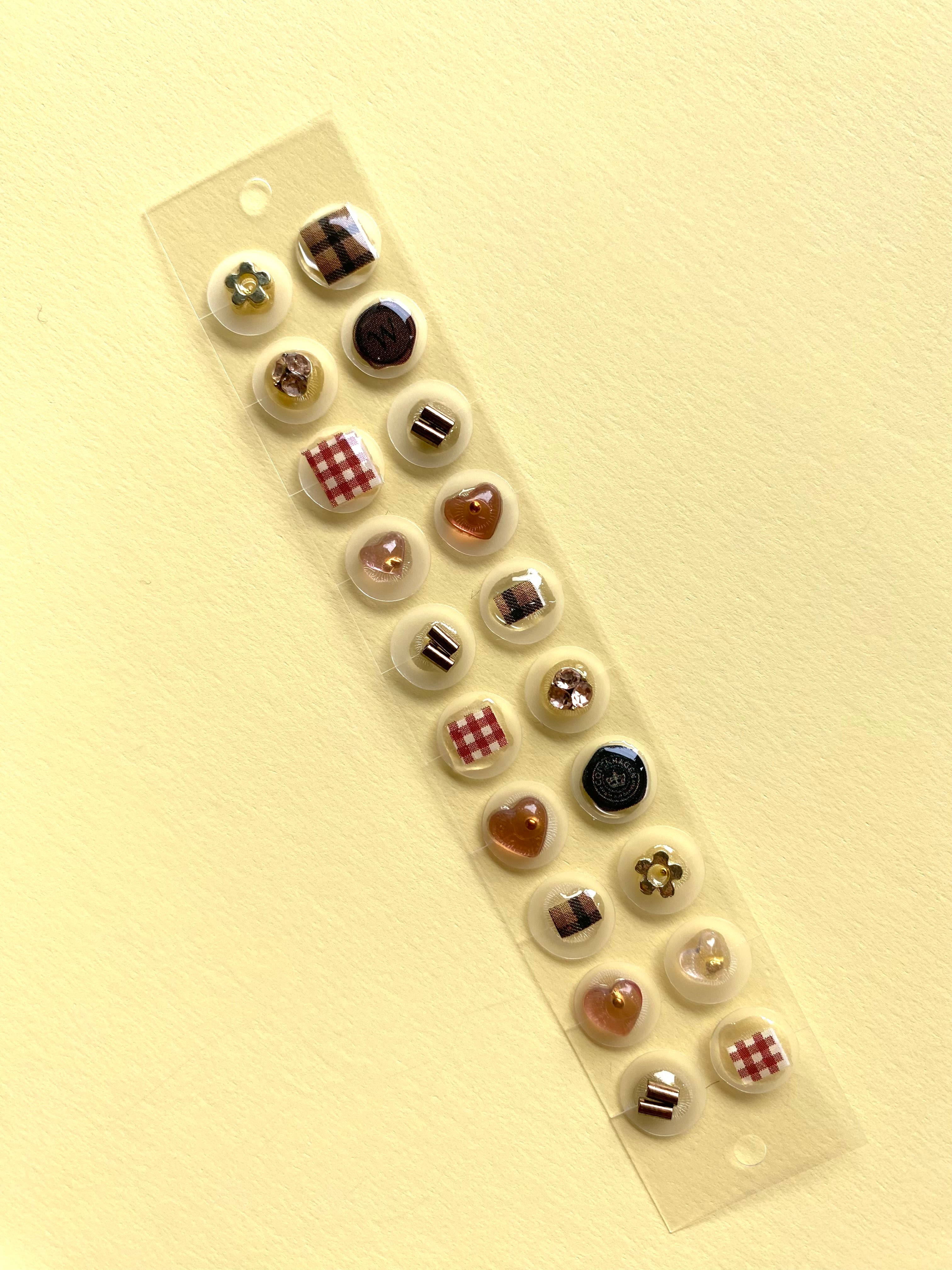 グレンチェックやギンガムチェックを思わせる秋らしい色合いの耳つぼジュエリー。