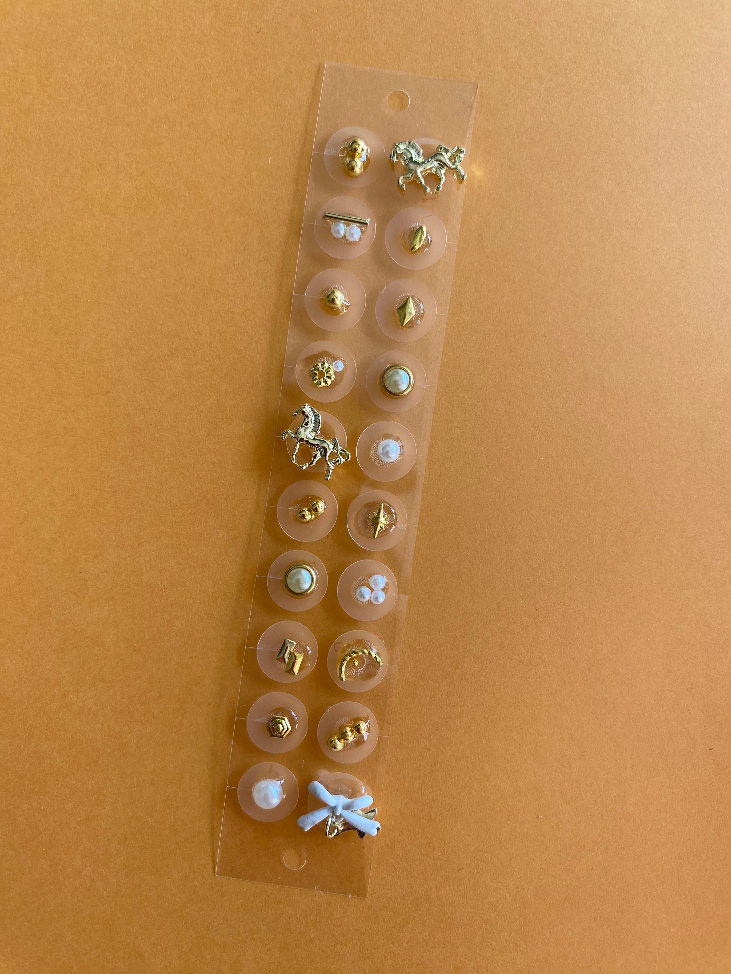 ゴールドの馬のパーツを使った、力強さと華やかさを感じる耳つぼジュエリー。