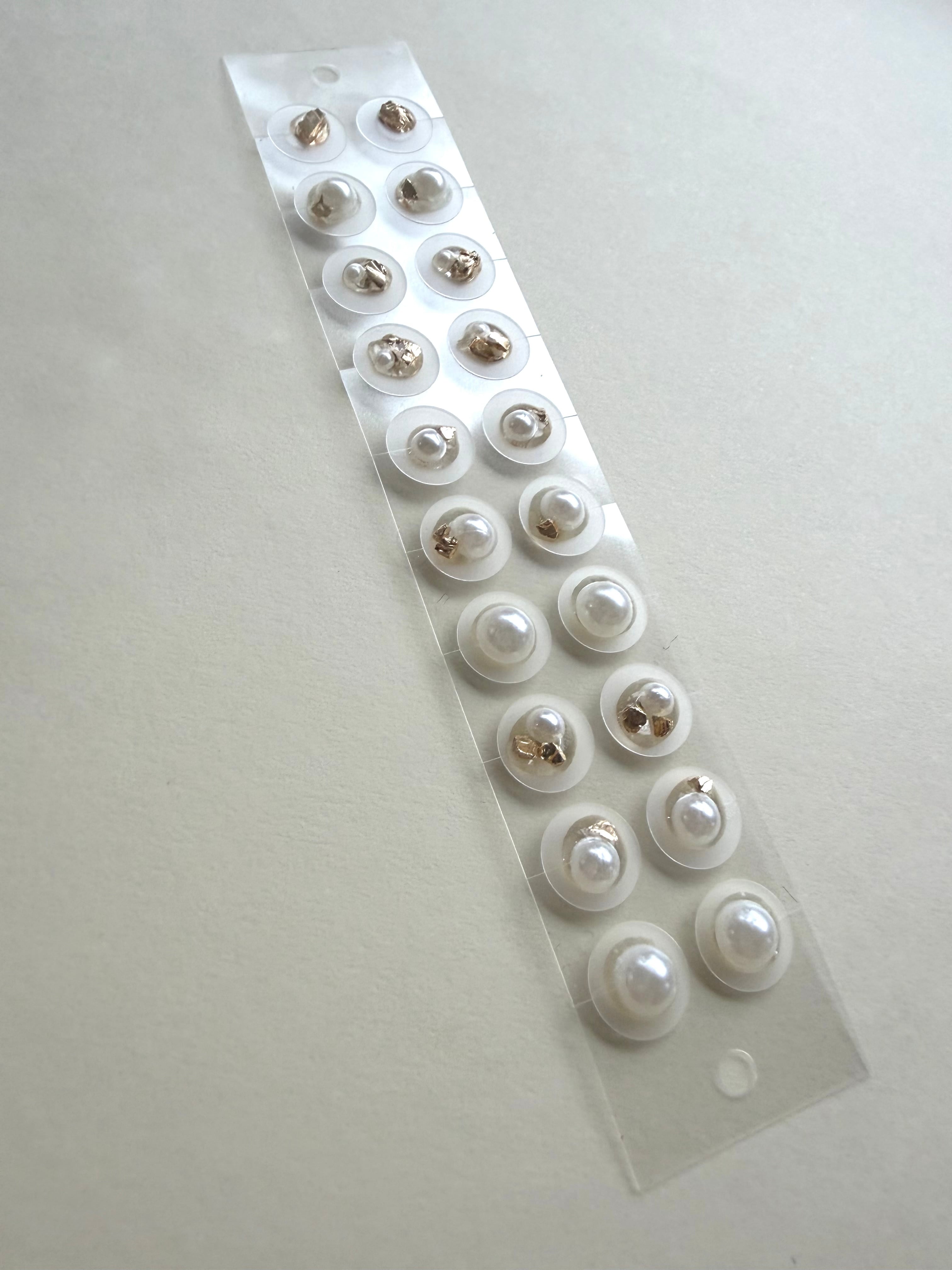 大きさの違うパール粒に、小さなゴールド粒を添えたシンプルな耳つぼジュエリー。